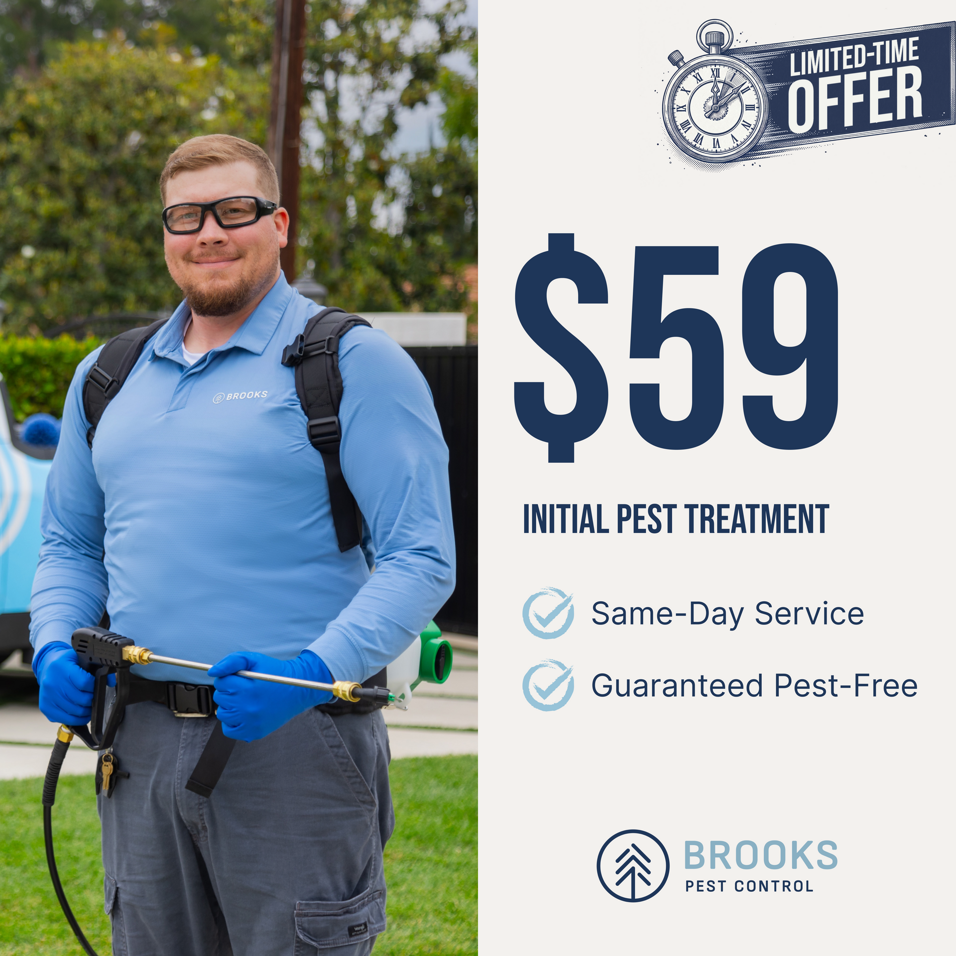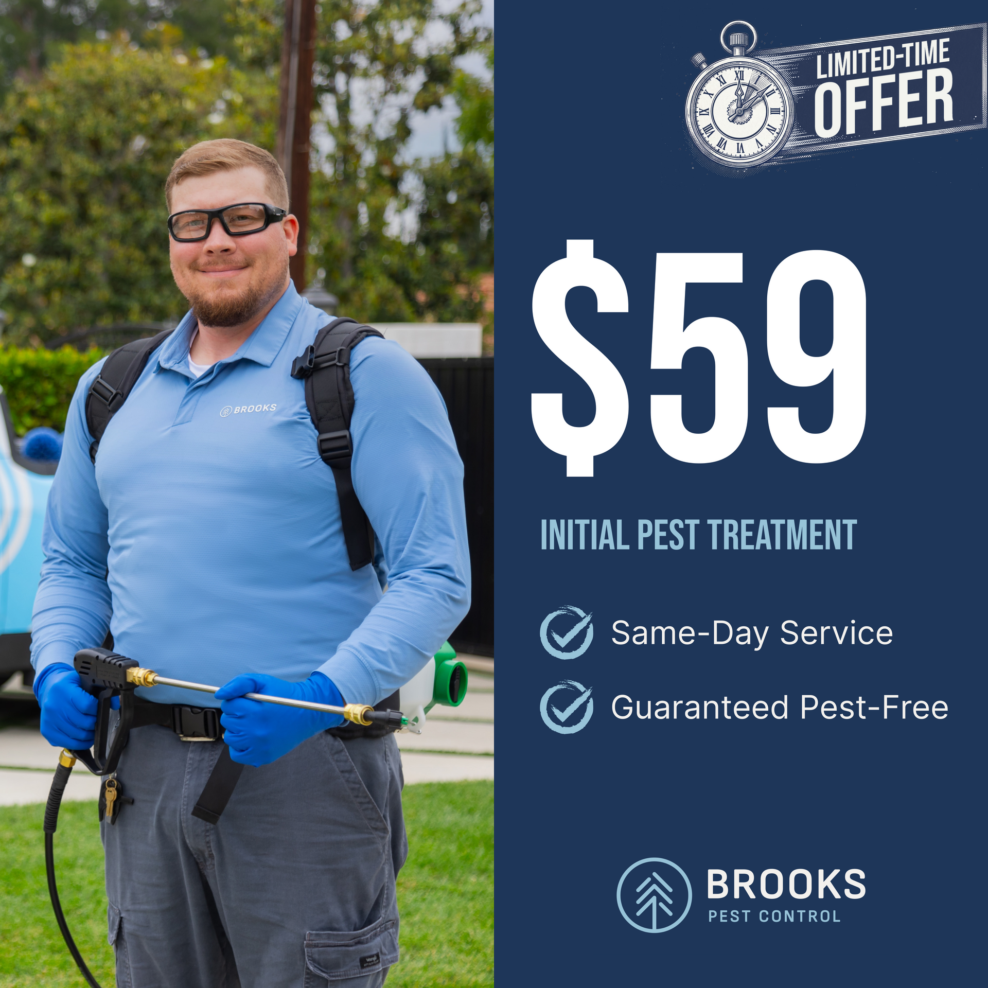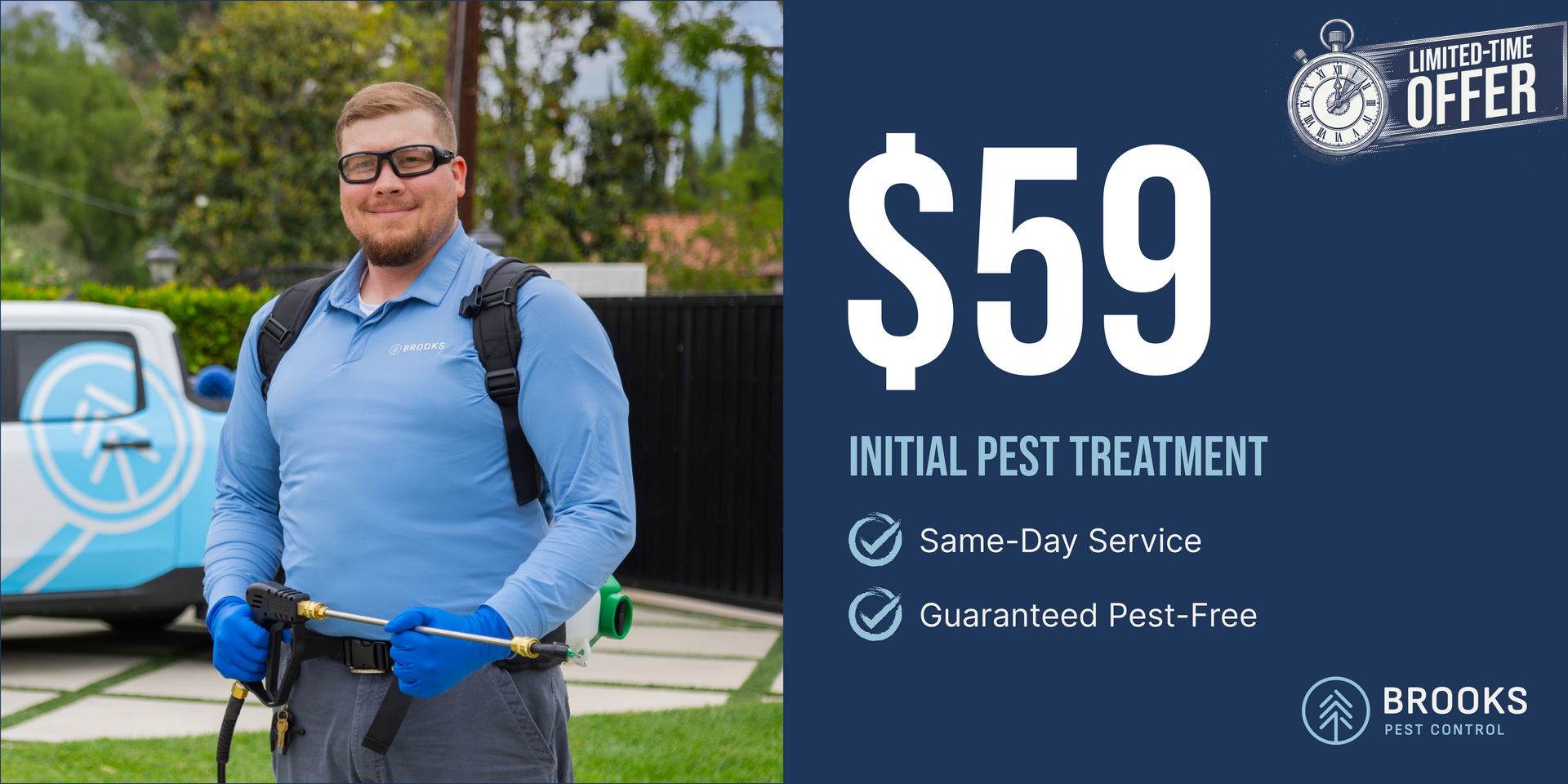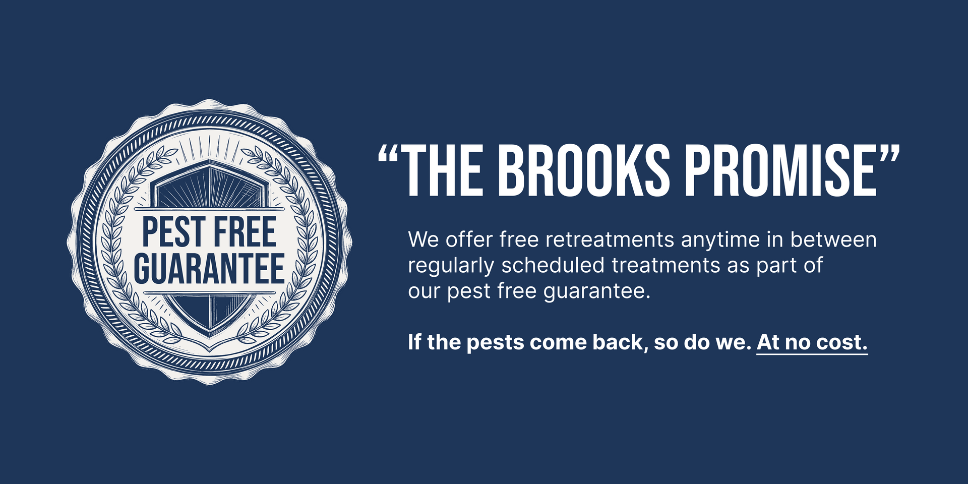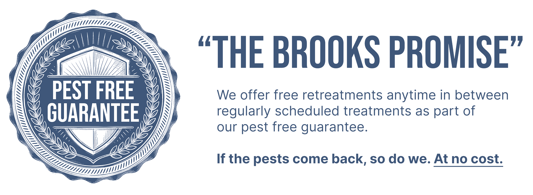 - Pest-Free Guarantee: We promise that if pests reappear, Brooks Pest Control will provide free retreatments to eliminate them.